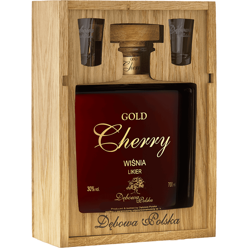 Wodka Debowa Polska LIkier Wiśnia 0,70l/30,0%/VII Skrzynka zasuwana karafka +2 kiel.